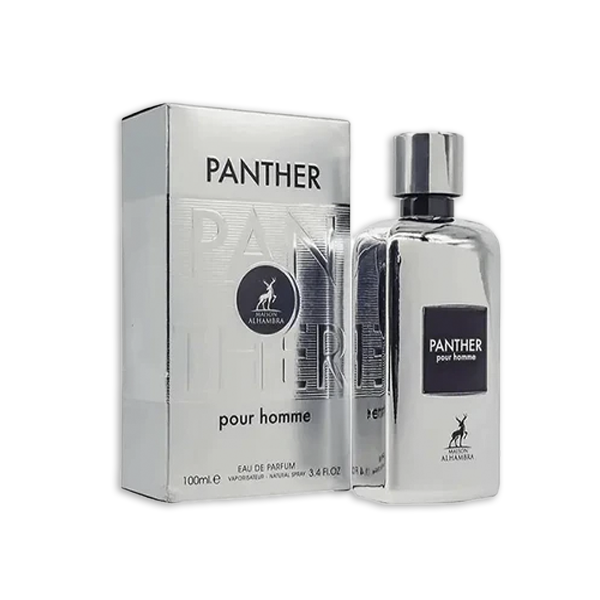 Panther Pour Homme de Maison Alhambra es una fragancia masculina sofisticada y versátil, creada para hombres seguros que buscan destacar con un aroma moderno y envolvente. Fresca, intensa y seductora, combina notas aromáticas con matices ahumados y un fondo cálido y elegante.